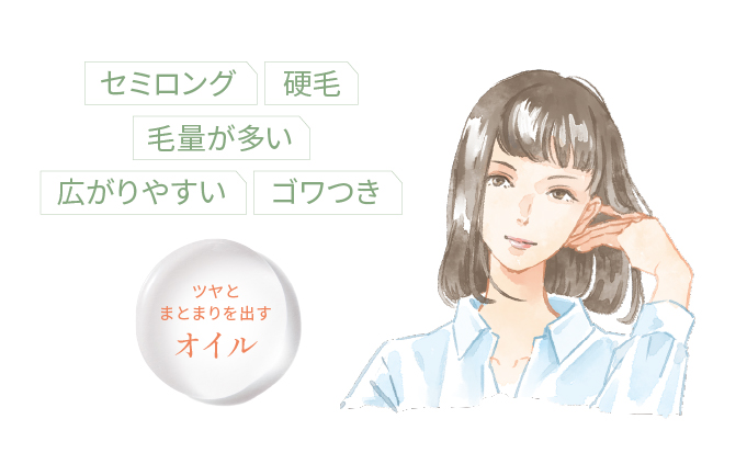 ・太くて硬い髪:オイルのまま/広がりを抑え、しっとりしたまとまり感