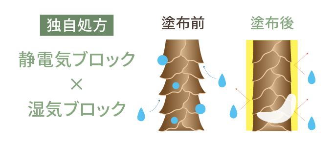 大人の髪は外部刺激に敏感です。マイナチュレは、「静電気ブロック × 湿気ブロック」の独自処方を採用しました。