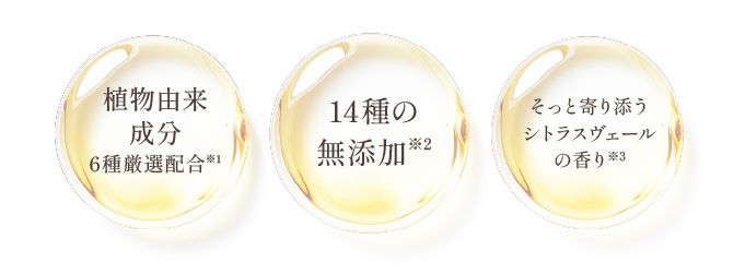 「今、育毛剤を使っているけれど併用できるかしら?」という方もご安心ください。ホホバ種子油やツバキ種子油など、厳選された6種の植物由来成分を配合。さらに、大人の頭皮と髪を考えた14種の無添加処方にこだわりました。