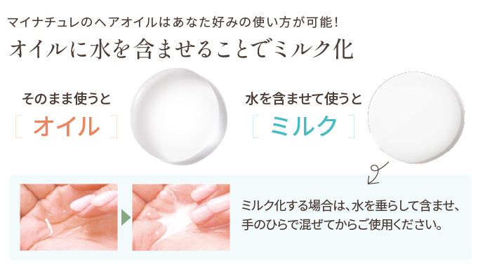 ・ミルク状にして使う:髪内部に水分をしっかり届け、しっとり柔らかな質感へ。