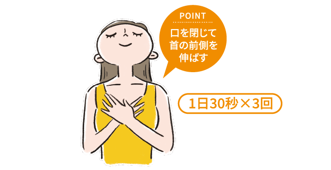 目安は1日30秒×3回。口を閉じたまま行うと、首の前側が心地よく伸びます。
